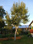 - Am Hochbeet: Apfelbaum mit zwei Sorten. Früh- und Spätapfel.