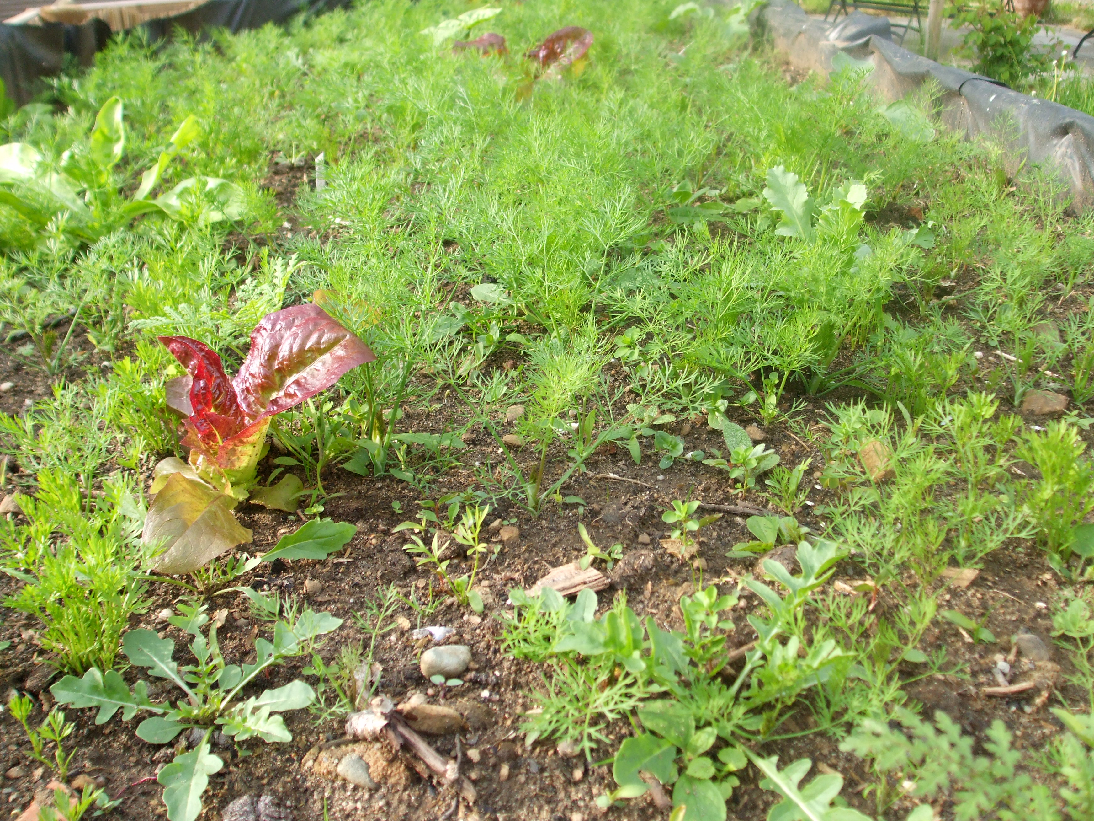 Die wilde Rauke, Dill, Pflücksalat und „Wildkräuter“ – alles samt sich von selbst aus…..