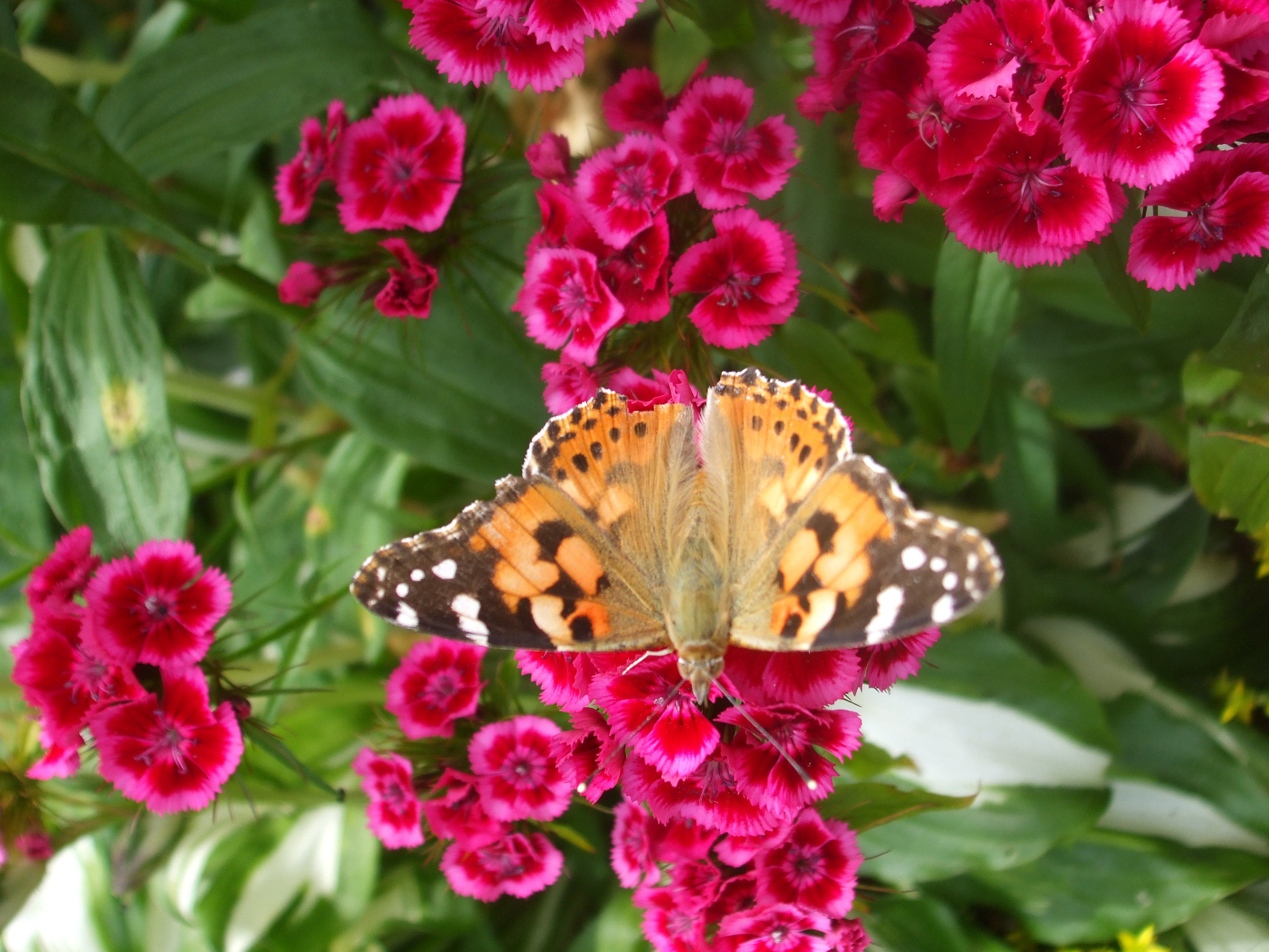 Ein wunderschönes, besonders großes Exemplar entdeckten wir heute im Staudengarten, hier auf den Bartnelken.