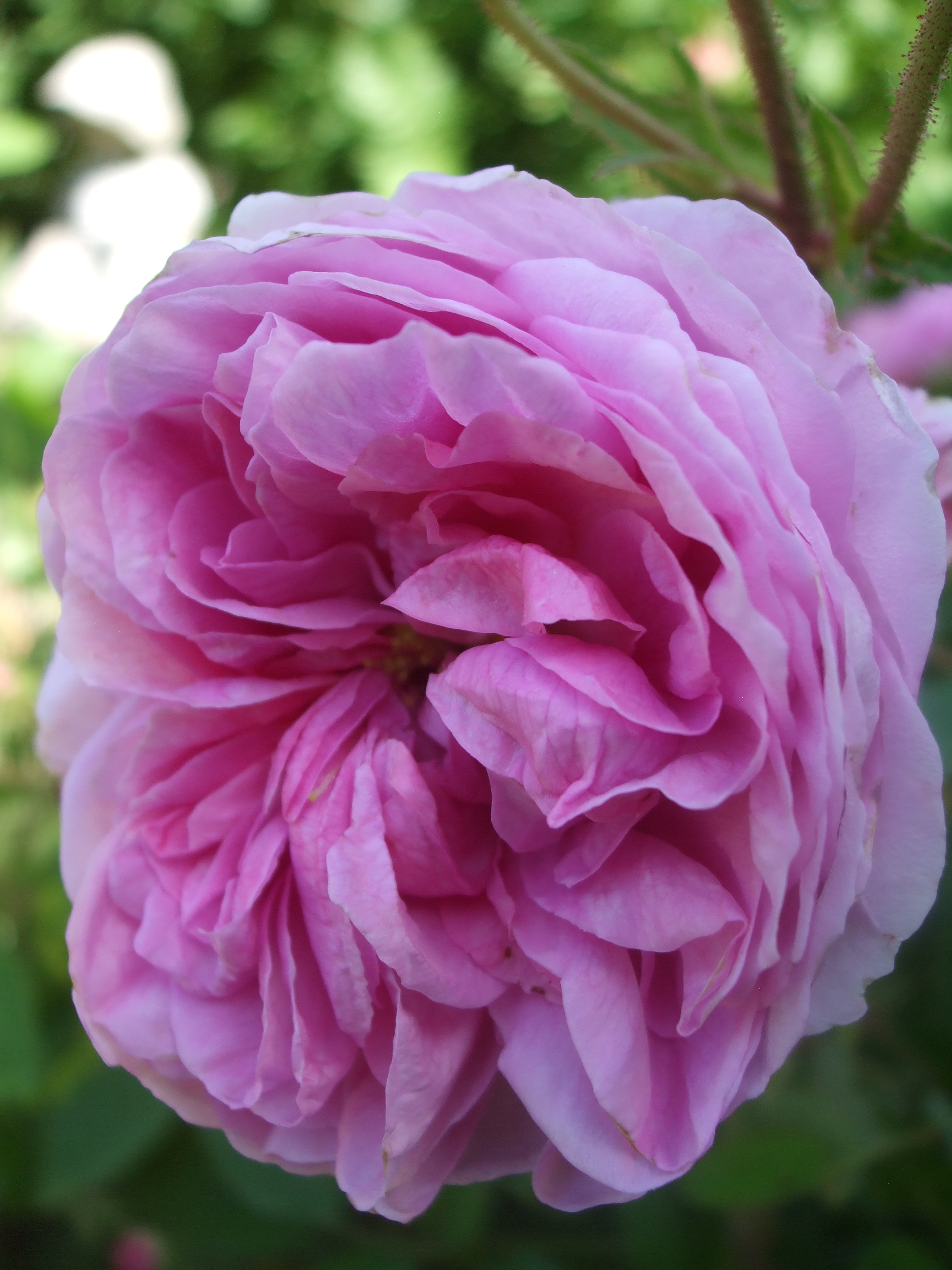 Diese Hundertblättrige Rose in unserem Rosengarten findet man häufig auf Bildern von flämischen Malern des 17. und 18. Jahrhundert. Dunkle, rosafarbene Knospen öffnen sich zu großen, hell rosafarbenen, seidigen, stark gefüllten Blüten, die einmalig duften und einzeln oder in Büscheln über den Strauch verteilt sind. Die überreiche Blüte zeigt sich von Juni bis Juli. Der buschige Wuchs mit überhängenden Trieben benötigt eine Stütze.
