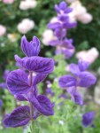 Nicht nur Lavendel, Rittersporn, Frauenmantel und Gräser harmonieren gut mit Rosen. Wir setzen gern Salbei ein – Muskatellersalbei (Salvia sclarea) oder Blauschopfsalbei (Salvia horminum) . Die Rosengärtnerei Kalbus, von der wir einige unserer historischen Rosen beziehen, empfiehlt Oregano, Thymian oder sogar Schnittlauch. Durch diese Pflanzen können Rosen auf natürliche Weise vor Krankheiten oder Schädlingen geschützt werden. Außerdem sind sie bei nützlichen Insekten sehr beliebt.
