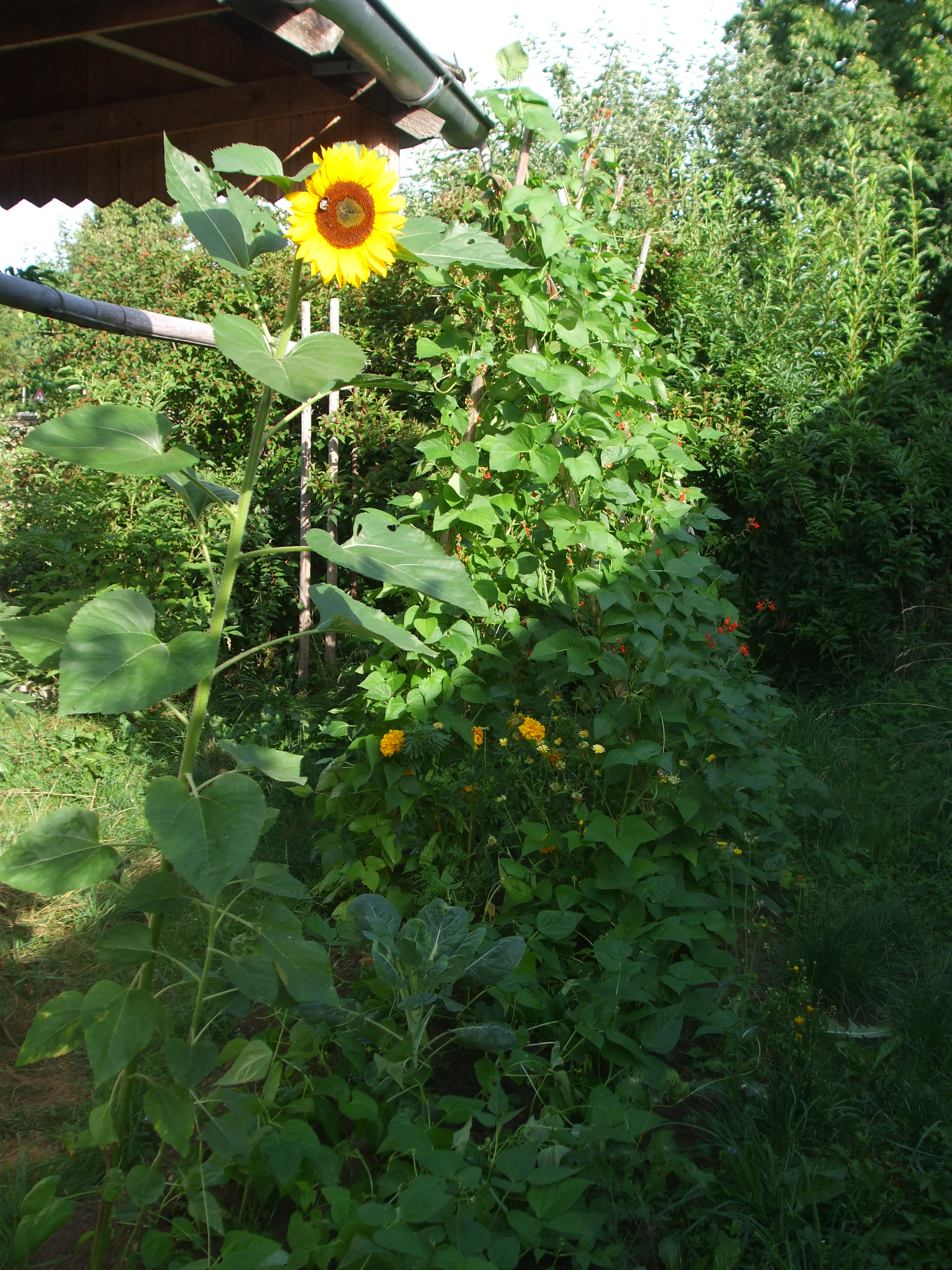 Die Feuerbohnen wachsen tüchtig in die Höhe und fangen an zu blühen!