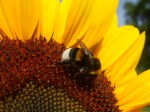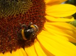 Die quirlige Hummel entspannt in der Sonnenblume.