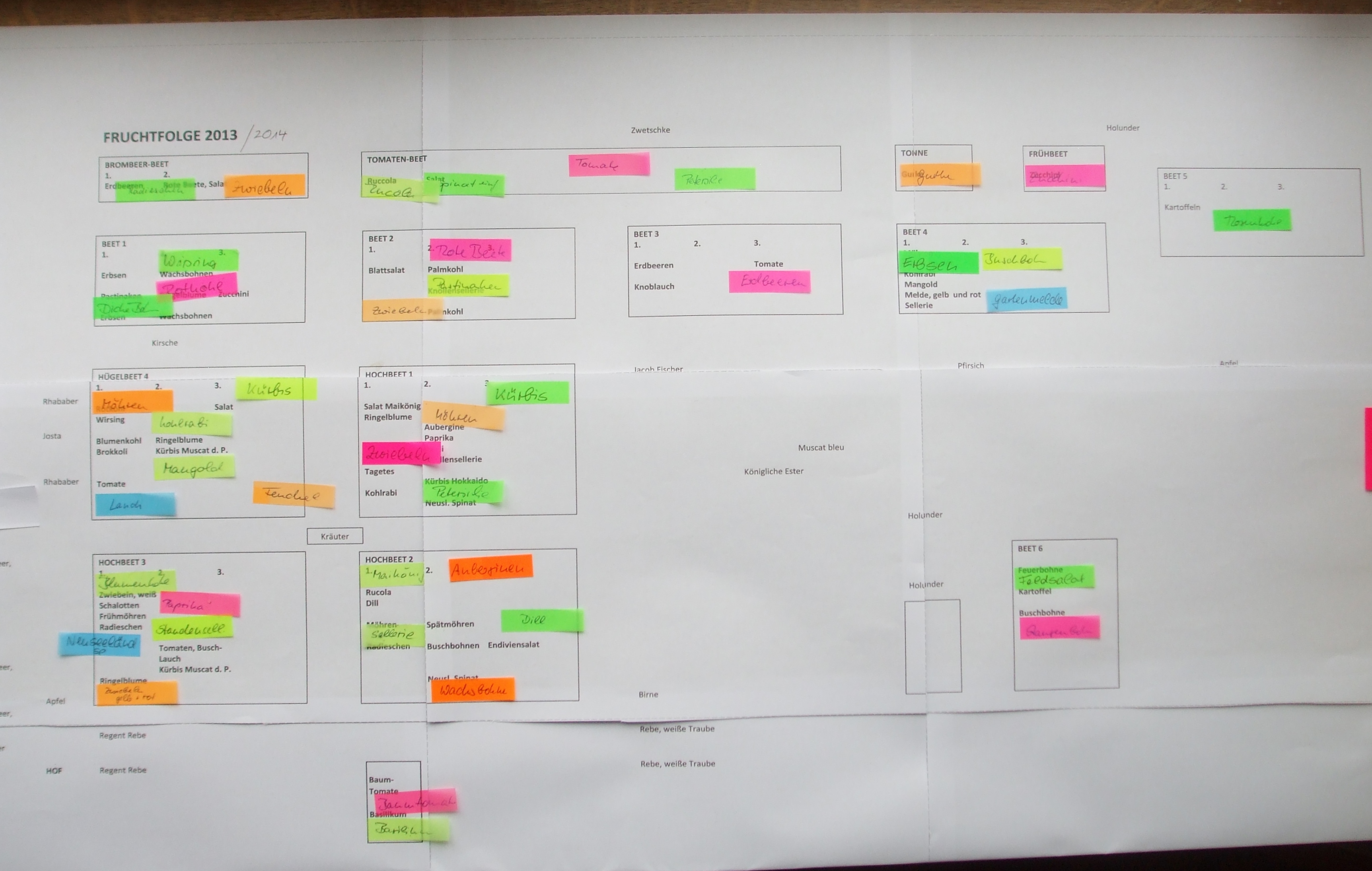 Die Planung im Küchengarten für das kommende Jahr ist abgeschlossen. Starkzehrer, Mittelzehrer und Schwachzehrer wechseln das Beet. Für einen 4 – Felder-Anbau  sind wir noch nicht vorbereitet, da das 4. Hochbeet erst im Frühjahr fertiggestellt wird und momentan noch hier und da Gemüse wächst: Endivien, Knollensellerie, Pastinaken, Lauch und Rote Beete. Steckzwiebeln sind schon in der Erde und Feldsalat ist gesät!