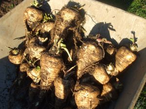 Wieder ein Sonnentag und Temperaturen über 7 ° C! Wir wollen die Gelegenheit nutzen, um die letzte Pastinakenernte einzubringen.