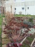 Im Garten wachsen Sedum, Digitalis und Papaver orientale um die Wette..