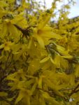 Im Erstfrühling beginnt die Forsythie an zu blühen, ebenso Beerensträucher wie die Stachelbeere und Obstbäume wie bei uns Kirsche, Pflaume und Birne. Die Stare sind wieder da und bevölkern lautstark die alten Kastanien.