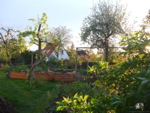 So hübsch ist es bei euch, Sabine. Du bist für mich die beste Gärtnerin, die ich kenne. Das liegt an der Mischung aus Gemüse, Obst, Blumen, Sträuchern und Bäumen, die ihr pflanzt und zwar in einer so schönen Kombination, dass man sich immer zwischendrin fühlt. Und nie dort, oder dort oder dort ….