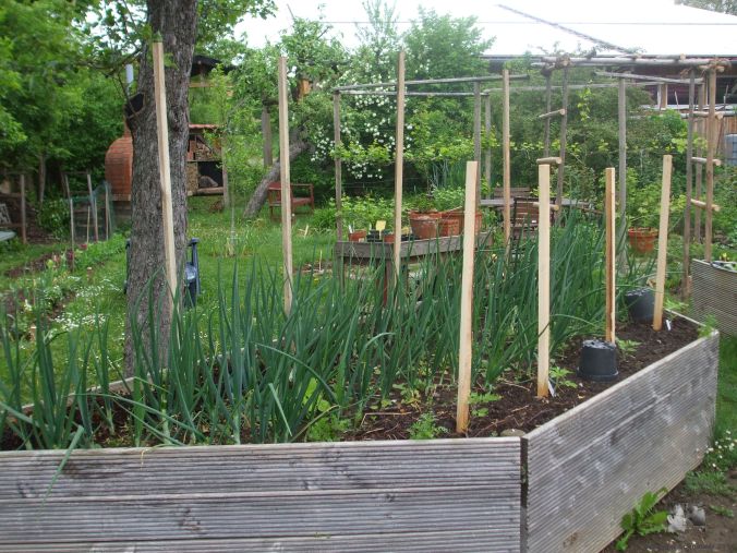 2. Ich ziehe mal wieder den Hut vor eurer Effizienz und dem perfekten Küchengarten. Gibt es bei euch keine Spätfröste mehr zu erwarten? Ich werde unsere Tomaten draussen setzen, wenn wir wieder daheim sind. Sehr schöne Rankgerüste übrigens, die bestimmt im nu voller Blüten sind. Freu mich schon drauf 🙂