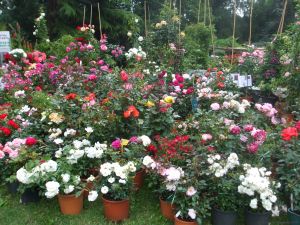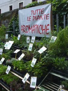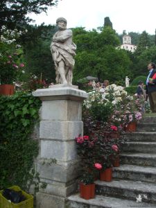 Unser Urlaub startete sehr rosig: gleich am Anreise-Wochenende fand die Veranstaltung bei traumhaften Temperaturen statt! Die Zahl der Rosen war unüberschaubar, besonders auffallend empfanden wir die großen Blüten! Vermisst haben wir jedoch alte, historische Rosen. Das Angebot an duftenden Kräutern, Hosta, Heuchera und Weinreben war sehr groß und ließ kaum Wünsche offen. Erfreulicherweise gab es Stände mit hochwertigen, handgefertigten Töpfereien, Holzarbeiten, Grafiken, Korbflechterei und Stoffen. Einige Räume der Villa waren zu besichtigen, vor allem der Saal mit einer vorbereiteten Hochzeitstafel fand lebhaften Zuspruch!