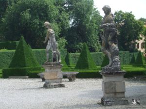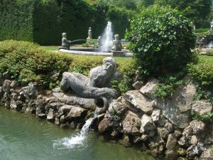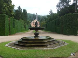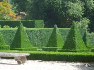Bemerkenswert sind die äußerst gepflegten Wasserspiele, Brunnen und Hecken. Der Buxus sempervirens befindet sich in tadellosem Zustand, zumal der größte Teil schon fast 400 Jahre alt ist! Einen der vielen Gärtner haben wir befragt: insgesamt sind 90.000 qm zu schneiden!