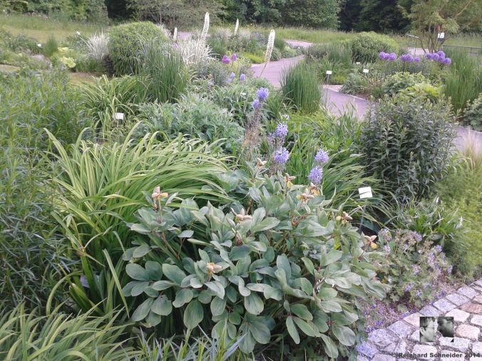 Auf der Rückreise des Urlaubs hatten wir noch ein Highlight: eine Verabredung mit Gerd Oellermann, Garten- und Landschaftsarchitekt, Taglilienzüchter und Gestalter des Taglilien-Schaugarten in Ulm, der Teil des Botanischen Gartens der Universität Ulm ist. In und um seinen eigenen Garten sammelt Gerd Oellermann um die 1200 Taglilien von hellgelb bis purpurfarben. Leider waren wir vor der Blüte da. Dafür haben wir uns gern im Schaugarten von den Gestaltungsmöglichkeiten mit Taglilien überzeugen lassen. Von Gerd konnten wir lernen, dass es bei der Gartengestaltung mit Stauden nicht nur darauf ankommt, dass das ganze Jahr durchgeblüht wird, sondern dass in der Kombination und Anordnung der Stauden Blühendes die Aufmerksamkeit auf sich zieht und das Verblühende in den Hintergrund tritt. So sieht für den Gärtner das Beet immer attraktiv aus und die Pflanzen können sich nach der Blüte in Ruhe wieder erholen. Dafür hat Gerd Oellermann eine ausführliche Liste von geeigneten Kombinationsstauden erstellt, die er auch seinen Freunden von der GdS gern zur Verfügung stellt. www.taglilie.net Gerd Oellermann hat die Gabe, den Besuchern wichtige Informationen anschaulich zu erklären. Natürlich haben wir aus seinem Mähringer Taglilien-Garten einige Andenken mitgenommen, von denen wir noch berichten.