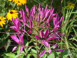 Bisher hat der August als Sommer – und Ferienmonat ziemlich enttäuscht. Zwar sind Stauden und Wiese in frischem Grün attraktiver als in den Jahren zuvor, allerdings vermissen wir laue Sommerabende im Garten. Die Rosen haben einen tüchtigen Wachstumsschub gemacht und erfreuen uns mit üppiger Blüte. Die Spätsommer-Stauden in allen nur denkbaren gelben Farbtönen strahlen um die Wette! Ein guter Kontrast ist die violette Spinnenblume, die ich im Juni erst ausgesät habe. Der weiße Phlox lockt die Schwärmer und die Holzbienen sind nach wie vor beim Muskateller-Salbei zu finden.