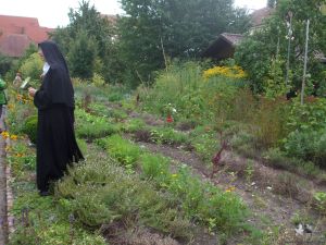 Das gleichnamige Buch, von Christa Weinrich OSB, hatte uns neugierig gemacht. Die Erfahrungen mit dem biologischen Anbau von Obst, Gemüse und Kräutern hatte uns angeregt, die Kräuterschnecke neu anzulegen. Auch die Kompostierung haben wir inzwischen umgestellt auf die Methode der Abtei und ihrem Kräuterpulver Humofix. Erste eigene Erfahrungen mit ihrer Methode mit Krankheiten und Schädlinge im Garten umzugehen haben wir gesammelt. Wir haben verschiedenen Brühen und Jauchen angesetzt und die befallenen Pflanzen gekräftigt, bzw. ihre Kräfte vorsorglich zu stärken.