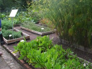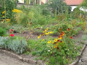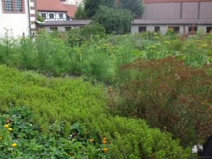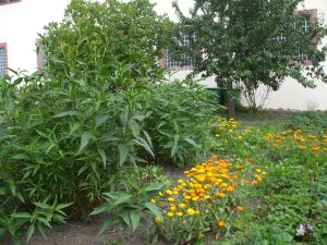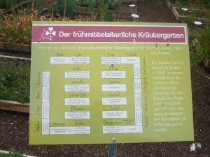 Dann ging es zum Kräutergarten, hier waren die Beete mit 20 cm hohen Brettern gefasst, so das jede Heilpflanze ihren festen Platz hatte. Schon der Gründer des Gartens der Insel Reichenau hatte in Fulda seine Kenntnisse über die Heilwirkung erfahren.