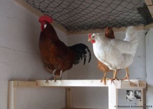 Erfreulicherweise haben sich alle Hühner gut eingelebt – sie scheinen sich wohl zu fühlen. Caruso geht ganz behutsam mit ihnen um und wirkt beruhigend auf sie.
