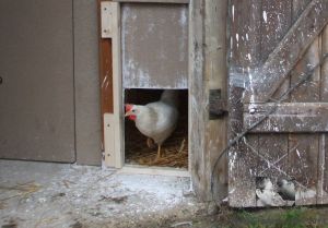 Eigentlich wollten wir heute das letzte der Hochbeete auffüllen, aber wegen des Wetters haben wir andere Arbeiten in der Scheune verrichtet, wie z. B. Lampe im Weinkeller ausgewechselt, die Balken für das Hochbeet gekürzt und einen Griff für die Hühnerklappe angebracht.
