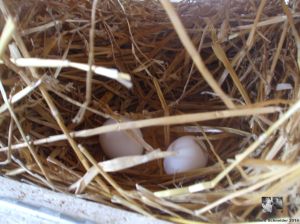 Am Donnerstag, dem 4. Tag ihres Einzugs legte Sabinchen das erste Ei! Erst am 3. und 4. Tag hat ein frisch gelegtes Ei die beste Genußreife. Wir wollen erst einmal ein paar Eier sammeln, bevor wir sie uns als Frühstücksei schmecken lassen 🙂