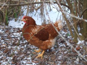 Die Tage werden wieder länger und die Hühner haben sich gut eingelebt. Da wir das Freigehege noch nicht eingezäunt haben und sie noch etwas fremd waren, mussten sie sich bisher mit einem Stündchen an der frischen Luft unter Aufsicht begnügen. Heute durften sie dann tagsüber im Garten bleiben. Zwischendurch verdrückte sich Sabinchen und legte ihr Ei.