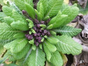 Die einfachen Primeln blühen nach wie vor so wunderschön, Narzissen und Traubenhyazinthen haben Krokus und Co. abgelöst. Von Tulpen ist außer ihrem Grün noch nicht allzu viel zu sehen. Im Hof blühen jetzt Sternhyazinthen Chionodoxa ‚Schneestolz‘ und die Küchenschelle  Pulsatilla vulgaris.
