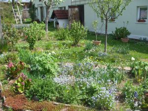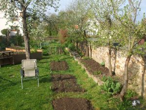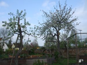 Mit einem Mal sind alle Bäume und Sträucher in Blüte und haben sogar schon sichtbar Frucht angesetzt. Es summt und brummt bis in den Abend! Der erste Maikäfer war schon in die Regentonne gefallen und ist glücklich gerettet worden…
