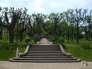Die Gesamtanlage stellt sich heute als rechteckiger Garten dar, der in sechs durch Wege getrennte Rechtecke gegliedert ist. Das Schloss liegt zentral, die Wege sind als Alleen ausgeführt. Die ursprüngliche Gartengestaltung ist nicht mehr erkennbar, die meisten Flächen sind mit Rasen besetzt, in den mittleren Rechtecken befindet sich lockerer Baumbestand, in einem weiteren ein Boskettbereich.