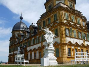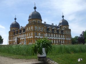 In der vergangenen Woche nutzten wir den Brückentag und besuchten Schloss Seehof in Memmelsdorf, unweit von Bamberg. Bereits im 15. Jahrhundert wurde am Ort der heutigen Anlage ein Jagdhaus errichtet. Das vierflügelige Schlossgebäude mit den markanten eckständigen Türmen entstand im Auftrag des Bamberger Fürstbischofs. Der Plan stammte von Antonio Petrini – der Bau wurde 1687 begonnen und 1696 abgeschlossen.