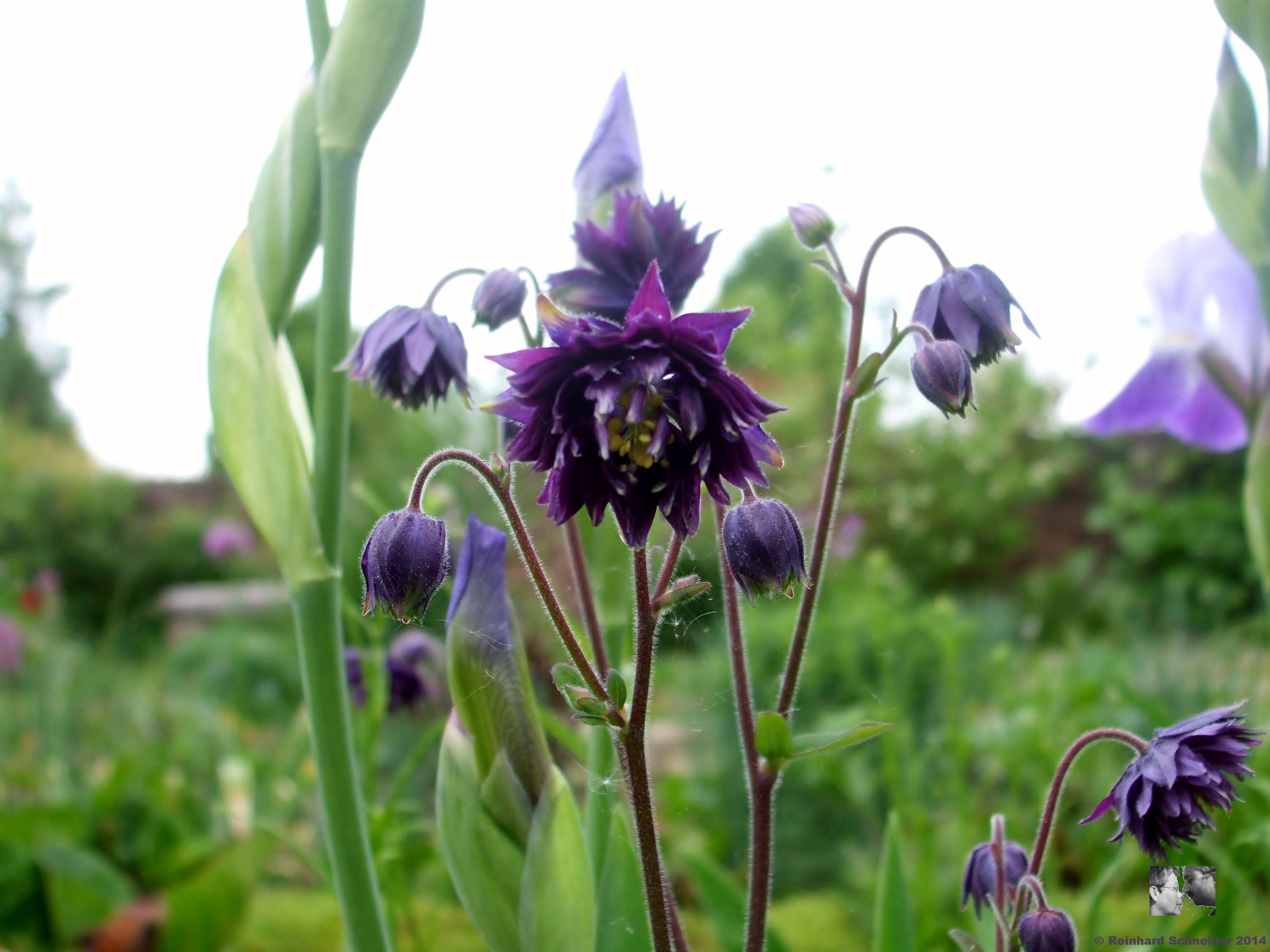 Zur gleichen Zeit etwa haben sich Aquilegia vulgaris und Aquilegia alpina – die Akeleien geöffnet, darunter auch Sämlinge von ‚Black Barlow‘