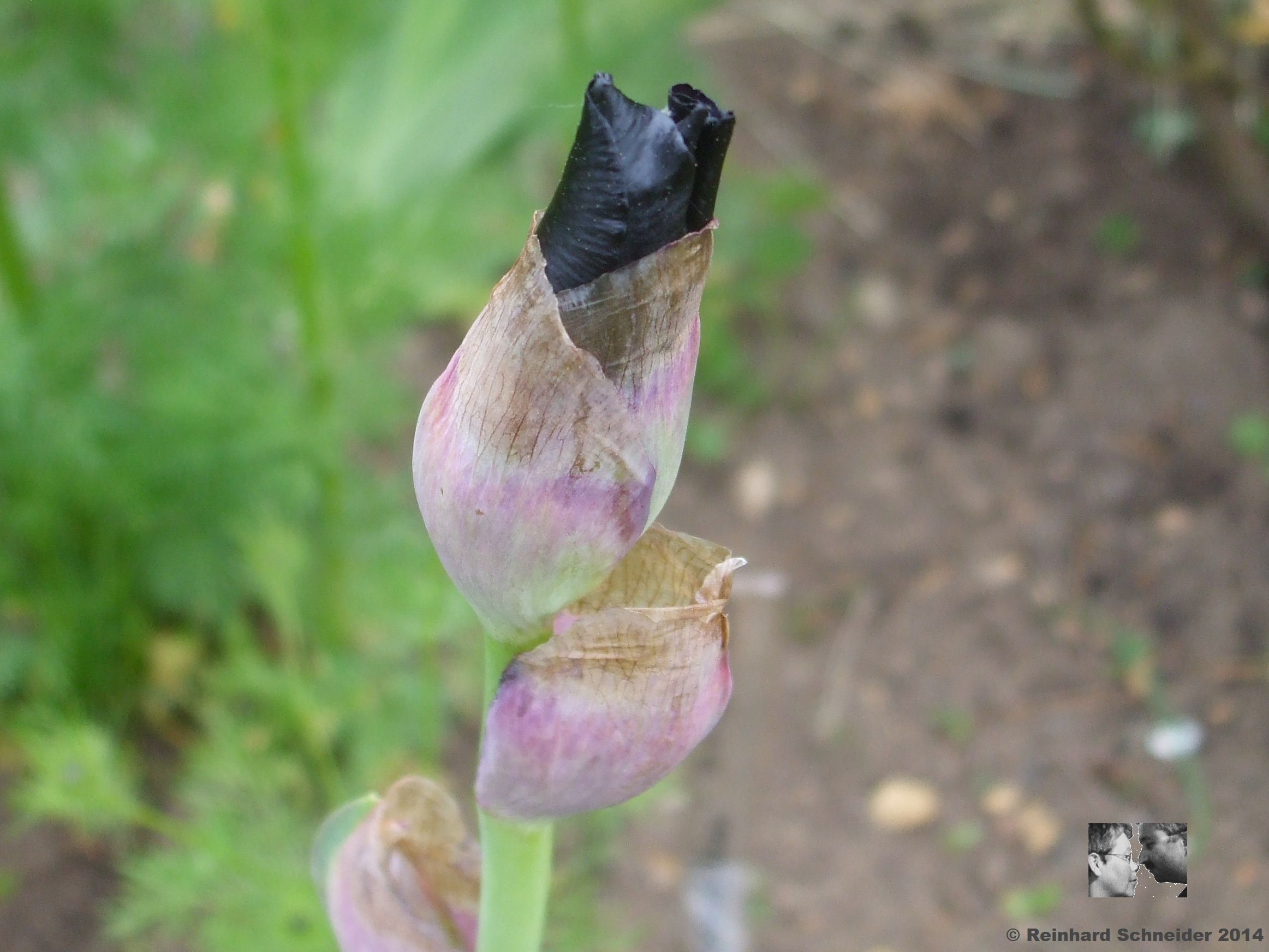 Eine wunderbare, extravagante Iris ist ‚Superstition‘, ihre schwarzen Blüten kann man schon erahnen…
