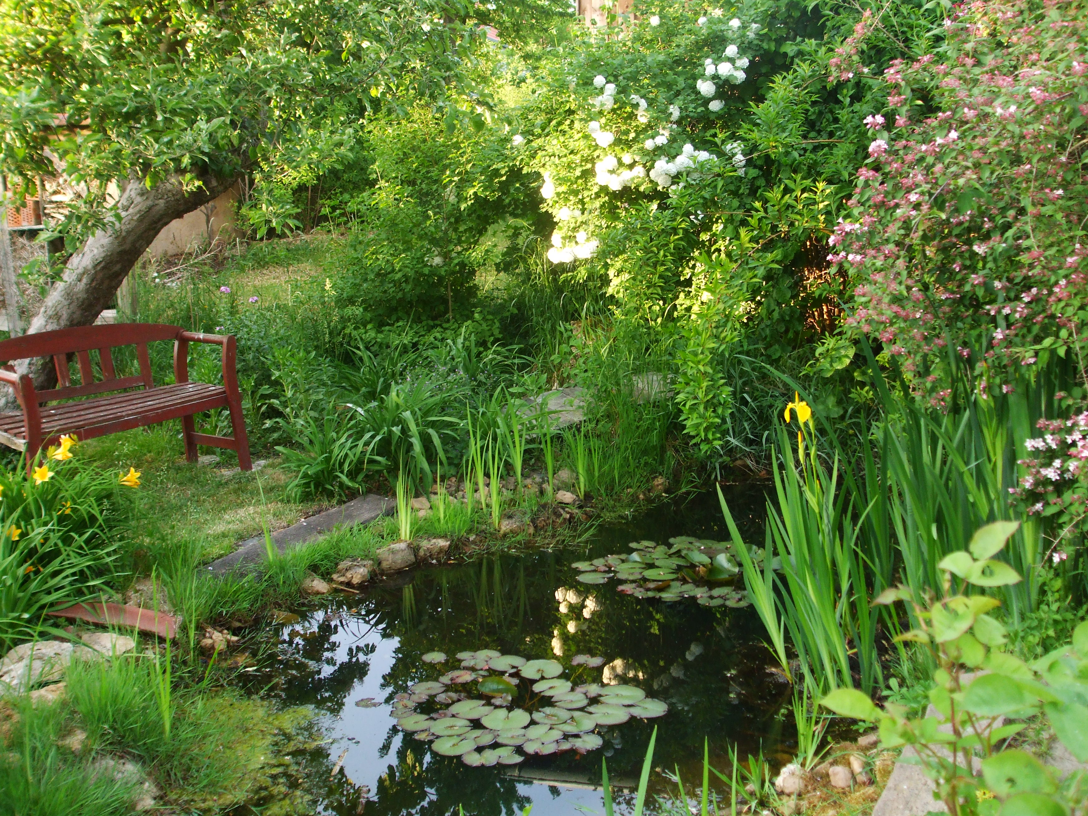 Die Seerosen haben dicke Knospen und ich kann es kaum erwarten, bis sie sich richtig öffnen! Libellen tummeln sich am Wasser, die Molche ziehen ihre Bahnen und Wasserschnecken gibt es reichlich.