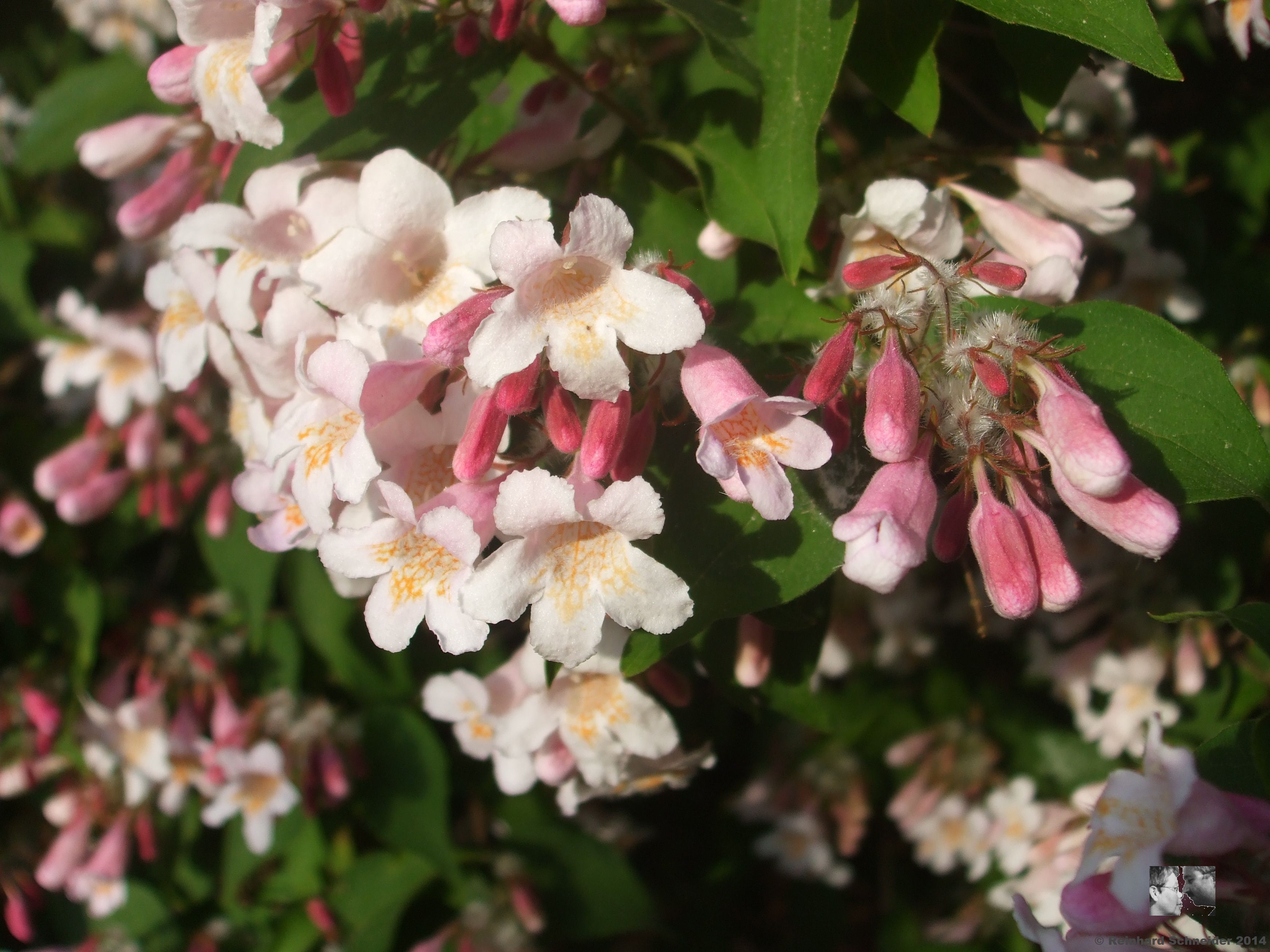 Die Kolkwitzia amabilis – der Perlmuttstrauch gehört zur Familie der Caprifoliaceae – Geißblattgewächse und stammt aus Asien. Er blüht im Mai/Juni und verströmt einen leicht süßlichen Duft.