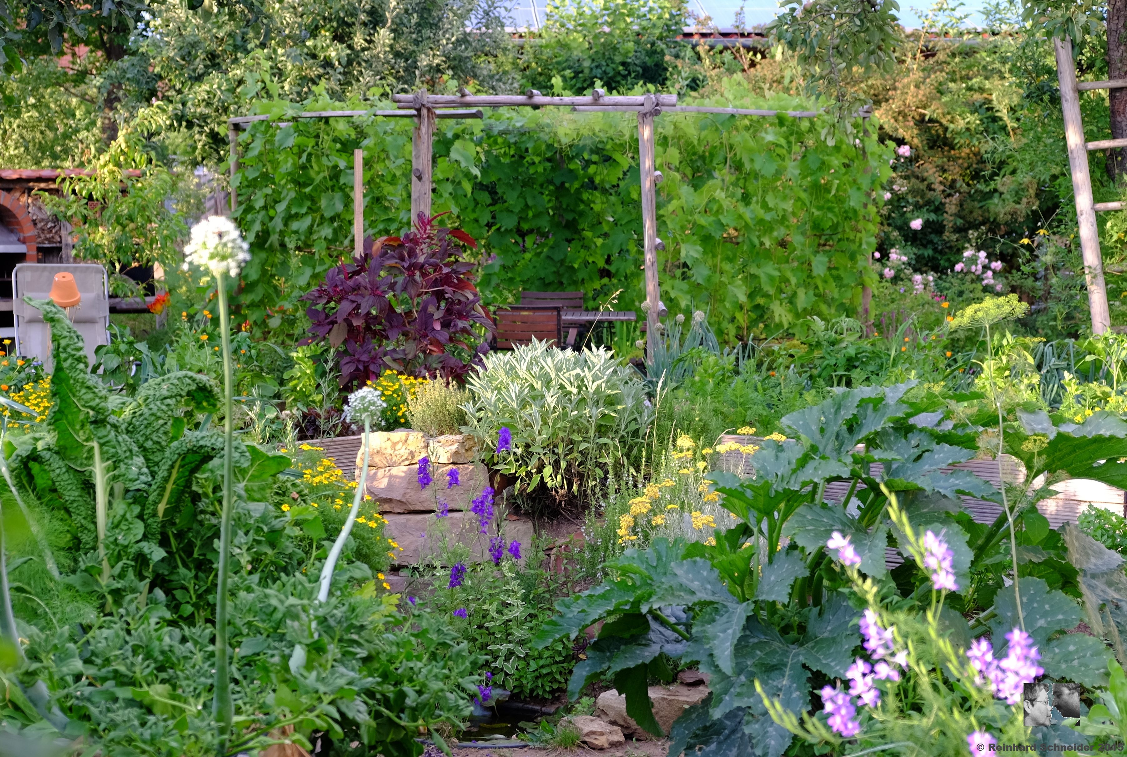 2. Das ist wirklich das schwierigste Jahr bis jetzt, keine Zuckerschoten und kaum Bohnen, die Saat wurde 3 x restlos vernichtet, ich weiß bis heute nicht, wer die Übeltäter waren. Der Fenchel schießt, es war zu warm, der Salat ist recht gut, zwar etwas angefressen, aber auch nicht alle Sorten. Der Neuseeländer ist nicht klein zu kriegen, prächtig wie jedes Jahr, die Zucchini und Kürbisse hinken noch hinterher, nachdem sie so spät noch 3 x Frost abbekommen hatten. Aber wir verhungern nicht, und es schmeckt wie immer fantastisch, Es sieht wunderbar bei Euch aus!