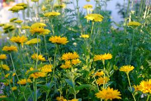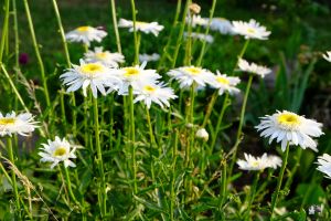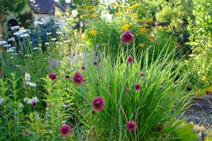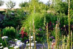 Anfang bis Mitte Juli, wenn die Rosen ihre wohlverdiente Pause einlegen, Delphinium, Alchemilla mollis und einige andere Stauden zurück geschnitten sind, ist die Zeit der Margeriten, der Achillea, der Rudbeckia, des Phlox und der Gräser.