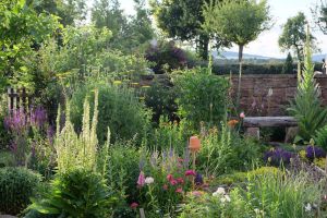 • Vorne links ist die weiße Königskerze Verbascum chaixii ‚Album‘ und hinten Verbascum olympicum 🙂 Die Sandsteine sind uralt..die Mauer auch 🙂 Wir haben uns vorgenommen, hier nur regionale Materialien zu verwenden. Daher sind auch unsere Rankgerüste aus Holz, bis auf eines haben wir die anderen selbst gebaut.