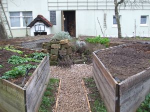 Das Januarwetter hat uns bisher keinen langen Frost beschert, somit konnten wir den Wegebau innerhalb der Hochbeete noch fertigstellen! Die Innenseiten werden noch bepflanzt, evtl. Kräuter oder mit Bauerngartenblumen wie Löwenmäulchen o.ä. – auf alle Fälle trockenheitsverträglich!!