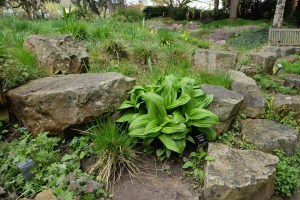 Hier dürfen wir nach Anleitung der Gärtnerin vorgegebene Beete von Stauden, Zwiebeln und Beikraut befreien.