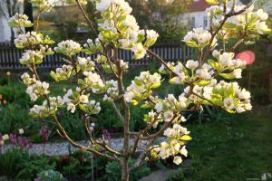 Mit Beginn der Apfelblüte und des Flieders beginnt der Vollfrühling (lt. phänologischem Kalender Mitte April bis Ende Mai). Innerhalb weniger Tage stehen Sträucher und Bäume in voller Blüte. Wir könnten doch eigentlich jetzt unser eigenes Baumblütenfest feiern, wenn……..das Wetter so bliebe! Gerade jetzt, zum Wochenende wird es wieder kalt und hässlich!!