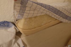 Seit einigen Monaten war unser Backofenfest geplant. Freunde aus dem Sauerland und Familie aus Hessen hatten sich angemeldet. Am Vorabend bereitete ich den Teig vor. Weizenvollkornmehl, Hefe und Wasser….Im kalten Weinkeller konnte er ruhen und aufgehen. Am nächsten Tag hatte er sich schön vermehrt.