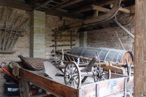 Im Hof findet man die Remise, das ‚Häusla‘ und die Mistgrube. In der Remise ein Brückenwagen mit Pflug und Korb und der Leiterwagen mit dem Jauchefass.