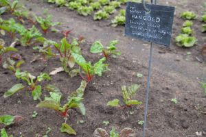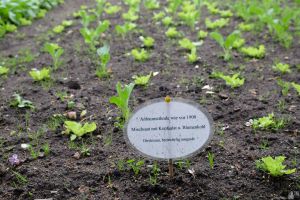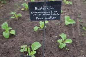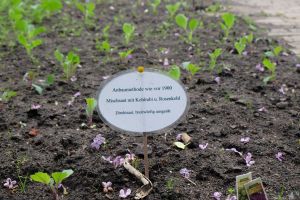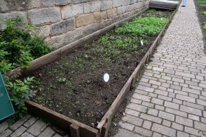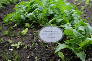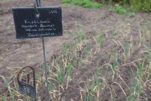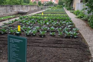 Am Ende gelangt man in den Bamberger Sortengarten, in dem lokale Sorten wie Zwiebel, Knoblauch, Rettich und Wirsing im Vergleichsanbau gezogen werden.