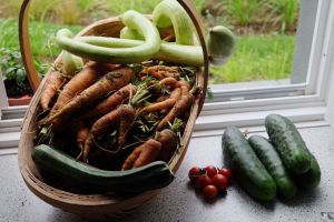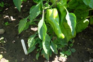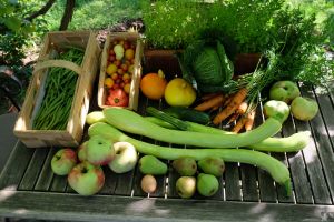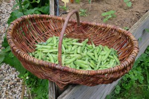 Erbsen, Weißkohl, Wirsing, Blumenkohl und Möhren, sowie Buschbohnen, Mangold und Zwiebeln sind teilweise geerntet, bereits verarbeitet und liegen im Lagerkeller oder in der Tiefkühltruhe. Gurken und Zucchini ernten wir laufend. Diesmal habe ich mich für die Sorte ‚Trombetta di Albenga‘ entschieden, weil sie ihre Samen am Ende in einer kleinen Samenhöhle verbirgt und somit das Fruchtfleisch fest und knackig bleibt.