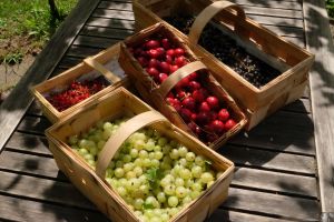 Stachelbeeren, Johannisbeeren rot und schwarz, Josta-Beeren und Kirschen konnte ich auf den Punkt ernten. Jetzt sind schon die Sommeräpfel reif und die ersten Birnen und Zwetschgen. Ach ja, von Himbeeren und Brombeeren ganz zu schweigen – die wandern sofort ins Eis 😉