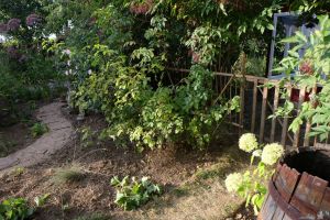 Nach der großen Hitze konnten wir jetzt die Pflanzen versetzen. Nur noch vereinzelte Exemplare des Frauenmantels schmücken die Kanten, da wir im Frühjahr noch einige andere Stauden einsetzen möchten.