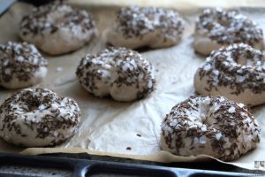 - übrigens: Teigrohlinge werden nach dem Anfeuchten mit Gewürzen und Körnern bestreut