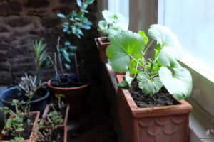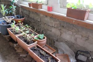 Die Pelargonien in der Orangerie hatten wir gestern ins Freie geholt. Bei schönem Wetter habe ich sie geputzt, geschnitten und in frische Erde gesetzt. Danach kamen sie wieder ins Haus. Hier können sie jetzt frisch austreiben, um bald wieder mit ihrer üppigen Blüte die Fensterbänke zu verschönern.