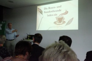Ideengeber und Motor des Projekts ist Rainer Trost, Leiter unserer Regionalgruppe Unterfranken. Er hatte schon lange die Vision, mit Staudenbeeten die Stadt zu verschönern. Aber es ist nicht einfach, seine Träume zu verwirklichen, wenn es sich nicht um sein eigenes Gelände handelt. Viele Gespräche mit Behörden und Instanzen sind erforderlich, bis man letztendlich loslegen kann. Rainer blieb immer am Ball und schilderte uns dies alles sehr anschaulich in seinem Beamer-Vortrag.
