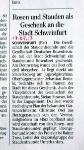 Auf diese Aktion gab es folgende Nachricht in der Mainpost/Schweinfurter Tagblatt unter der Rubrik ‚Zeug gibt’s`vom 12. Mai 2017: