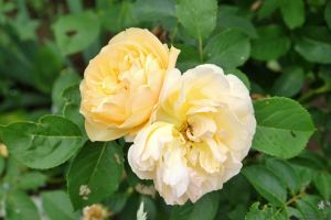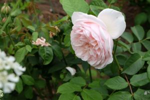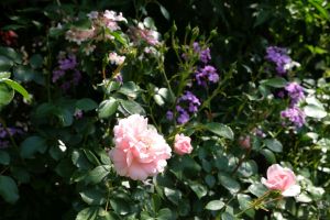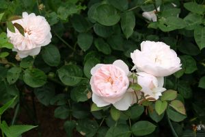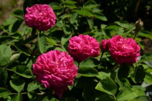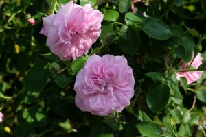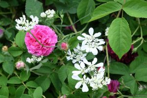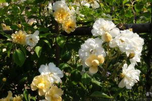 Hier sind Rosa gallica ‚Splendens‘ und Rosa alba ‚Suaveolens‘ im Bild….