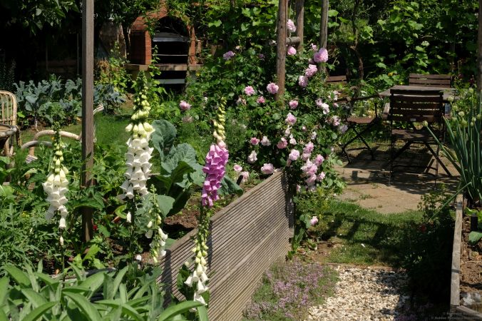 ‚May Queen‘ im Übergang vom Küchengarten zum Sitzplatz….