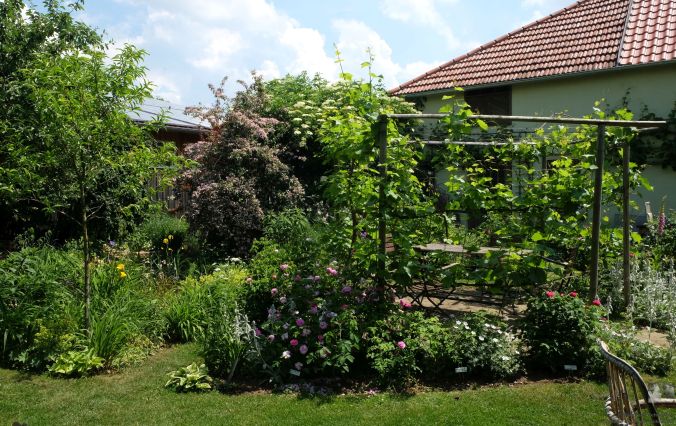 Ganz versteckt liegt der Rosengarten im hinteren Bereich des Gartens…